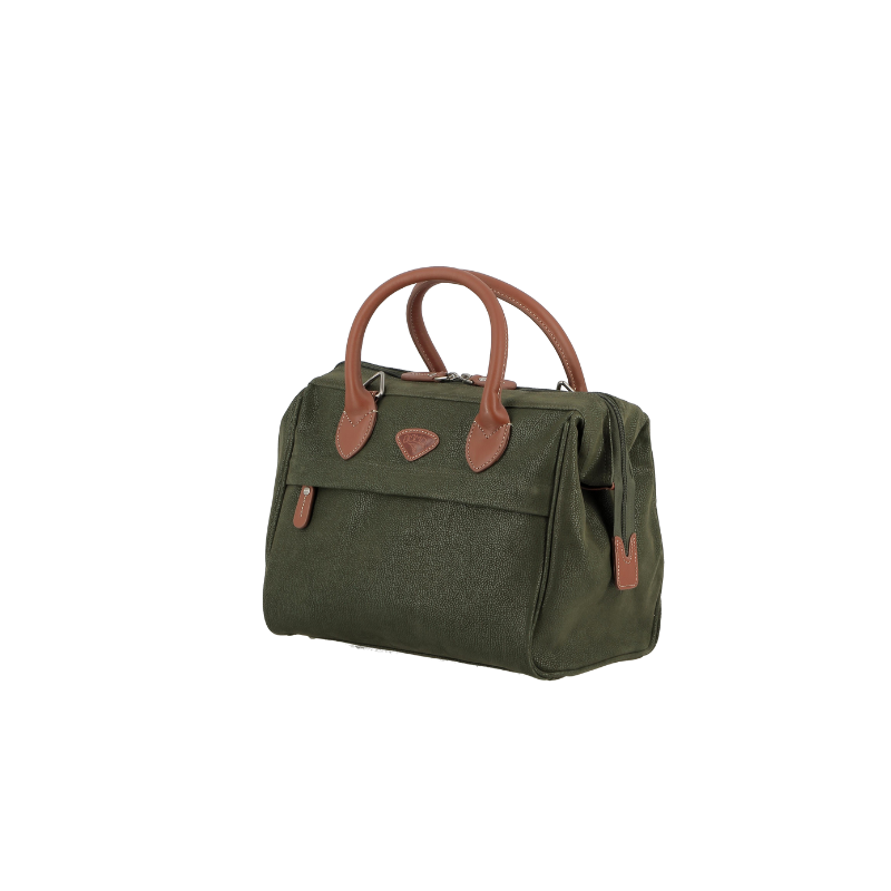 Matière Toile enduite contrecollée sur polyester. Renforts, curseurs et poignées en cuir vachette pleine fleur.
