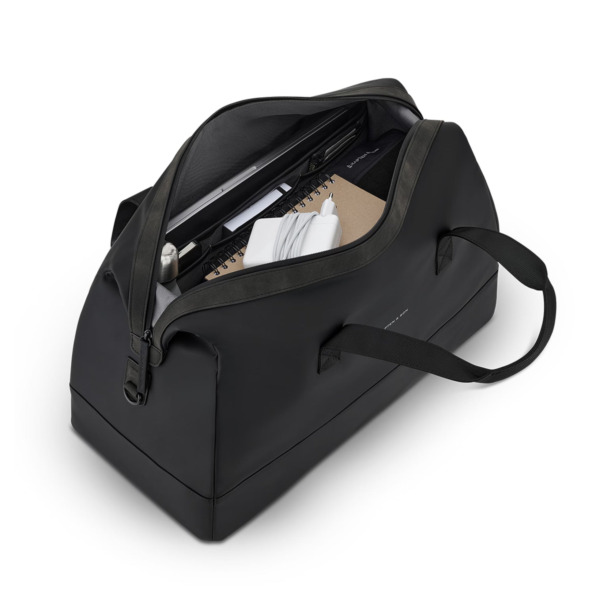 Le Kapten & Son Storen est un sac week-end pensé pour voyager léger, avec un compartiment chaussures séparé, une fixation pour valise et un compartiment ordinateur (jusqu’à 16").
