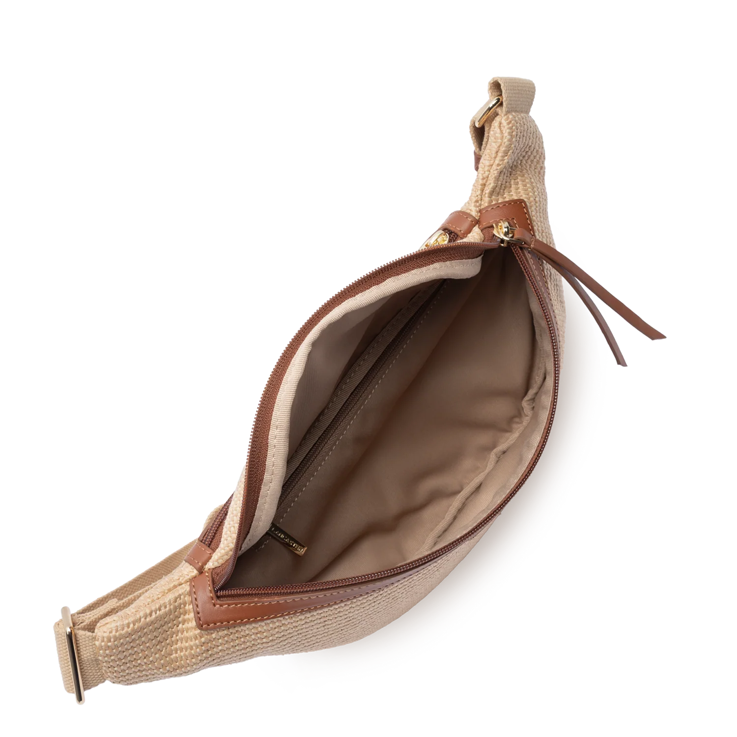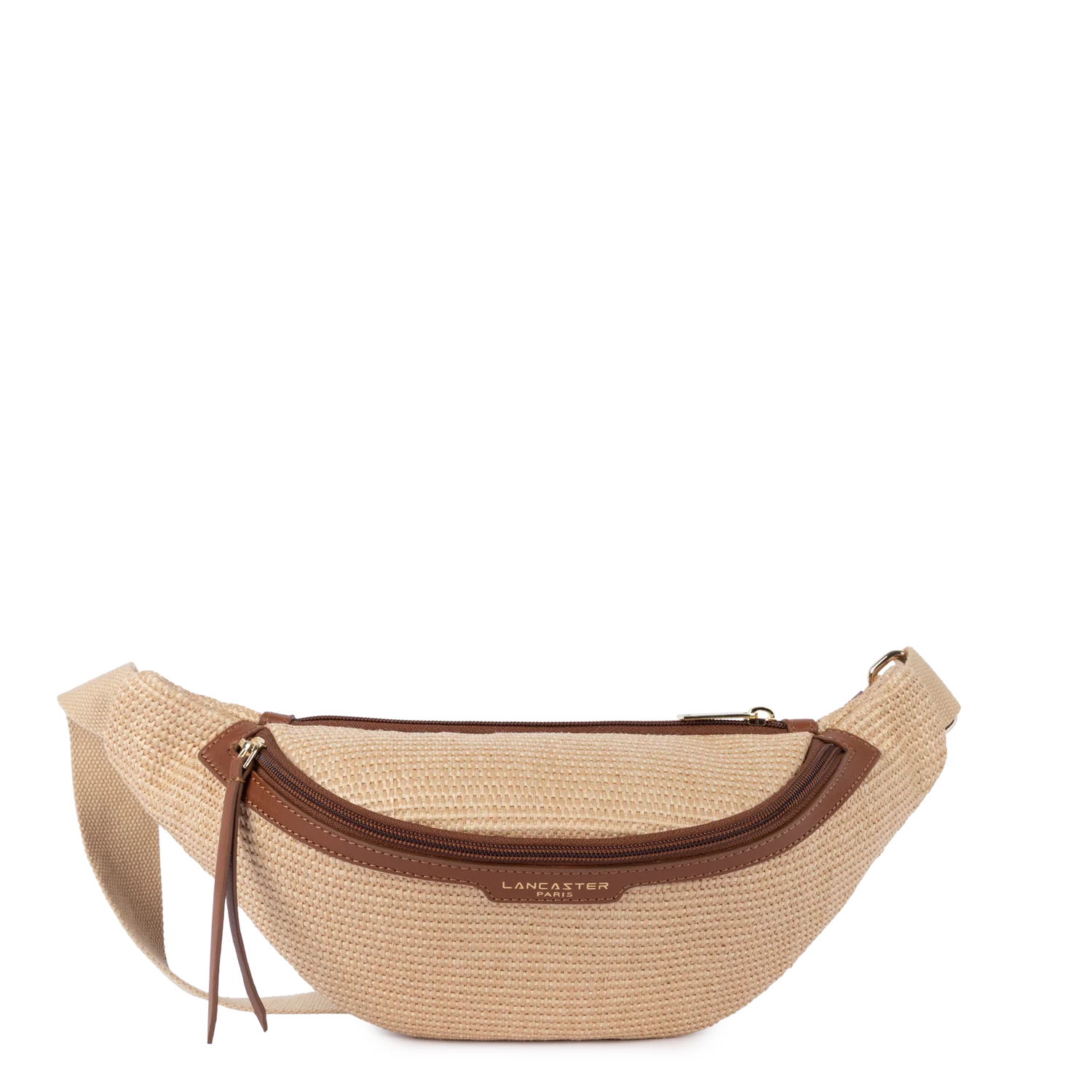 Le sac banane Lancaster Mini Osier est confectionné en polypropylène garni cuir de vachette. Il dispose d’une poche arrière extérieure zippée et d’une poche intérieure zippée, et se porte croisé ou à la taille.