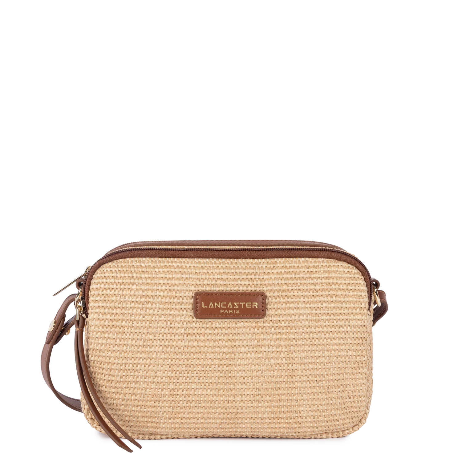 Le sac trotteur Mini Osier est confectionné en polypropylène garni cuir de vachette. Il possède une poche frontale zippée, une poche intérieure zippée et une poche intérieure simple, et se porte à l’épaule ou croisé.