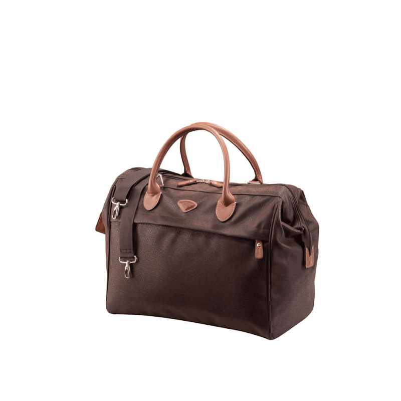 Matière Toile enduite contrecollée sur polyester. Renforts, curseurs et poignées en cuir vachette pleine fleur.