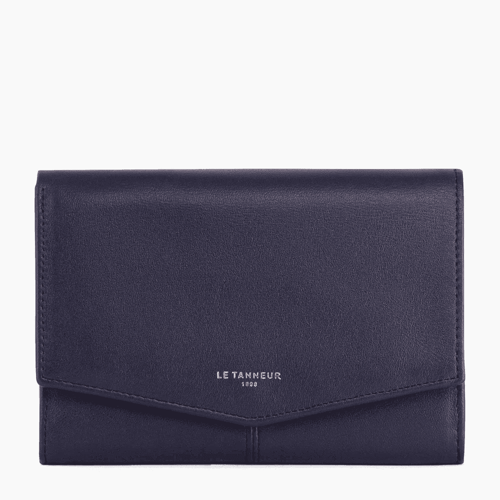 Doublure textile.2 poches plates, 1 soufflet, 1 poche chéquier, 1 poche zippée monnaie, 1 passant stylo et 12 compartiments cartes, 1 poche plate arrière.